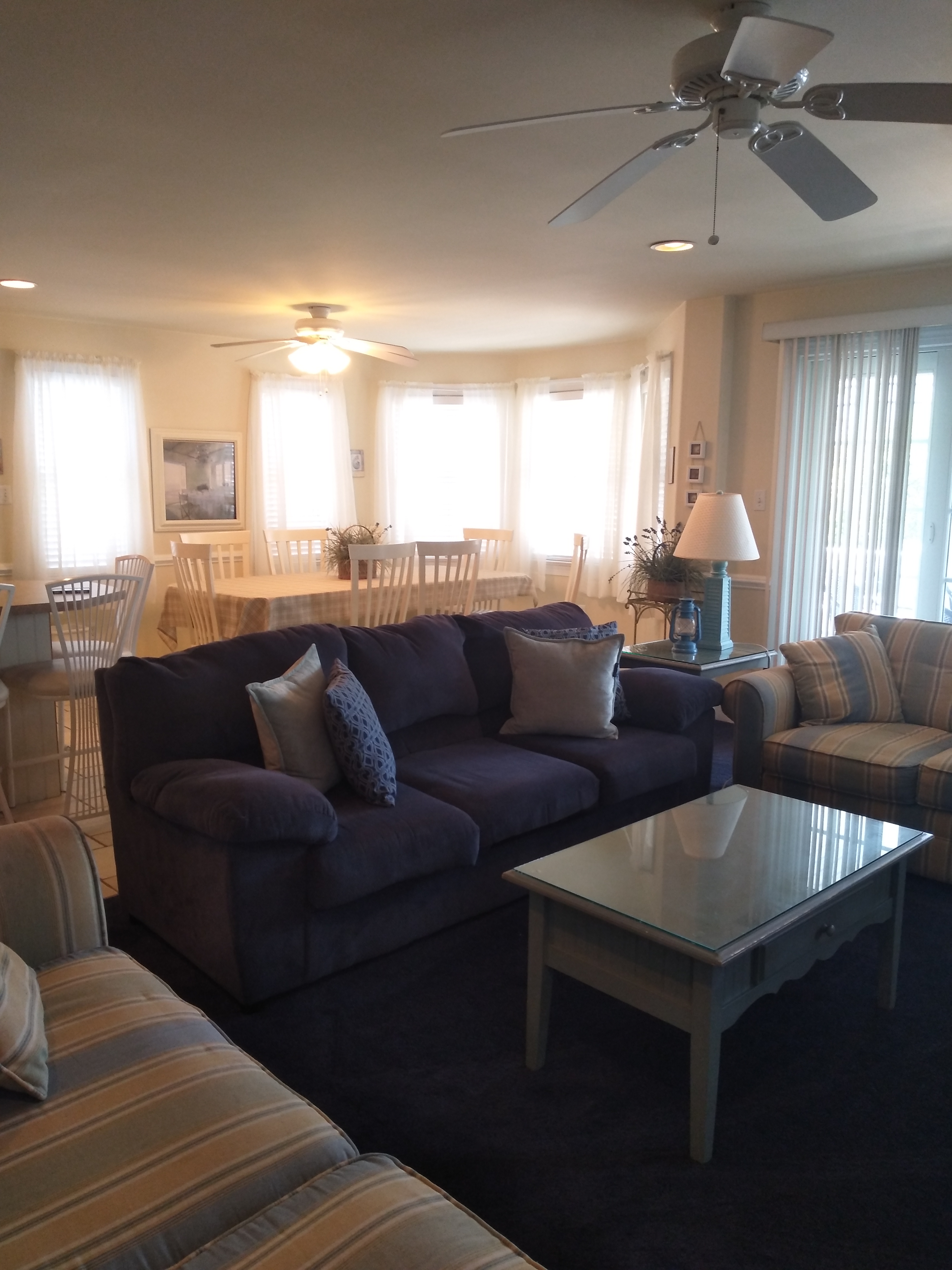 Super location - one block to great beach and boardwalk. Bright, airy, lovely cathedral ceilings, numerous windows, patio doors led to inviting front porch or sun bathe on private back decks.